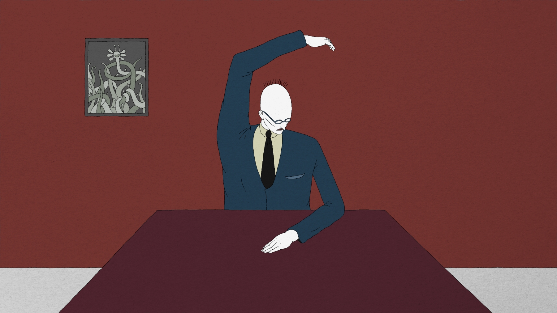 Rahvas ootab kedagi erilist. Keegi eriline sünnibki – täiskasvanud ülikonda riietatud mees. Rahvas järgneb mehele ning elab kaasa tema teatraalsetele, kuid mõttetutele esinemistele. Ühe esinemise käigus teeb mees vea ning teda varem jumaldanud rahvas jätab ta maha. Jäänud üksi, kohtab ta naist, kes on tema jaoks loodud. Teatraalsed esinemised jätkuvad…